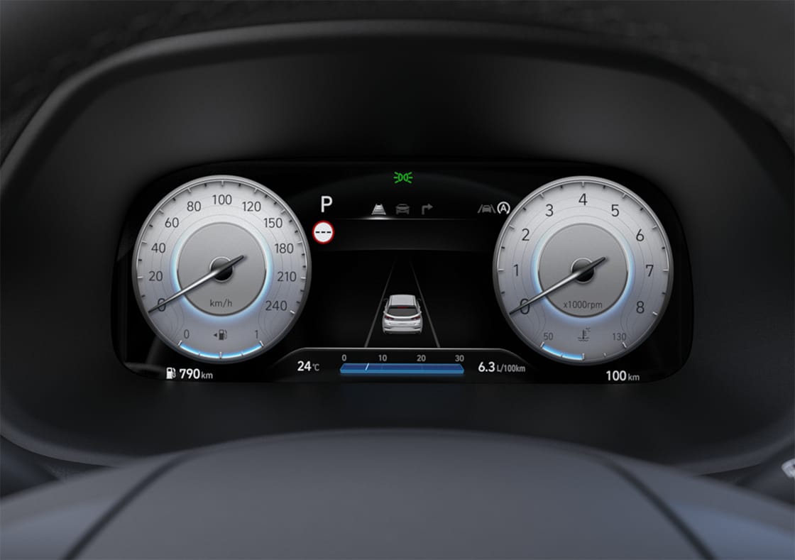 Yeni ve parlak 10.25 inçlik dijital gösterge ekranı, kokpitte daha da modern bir görünüm sağlamak üzere önemli sürüş bilgilerini en iyi görülebilecek yerde, önde ve ortada gösteriyor. Ekranı dilediğin şekilde kişiselleştirebilir, hızını, navigasyon bilgilerini veya aktif SmartSense özelliklerini dijital olarak görüntüleyebilirsin.