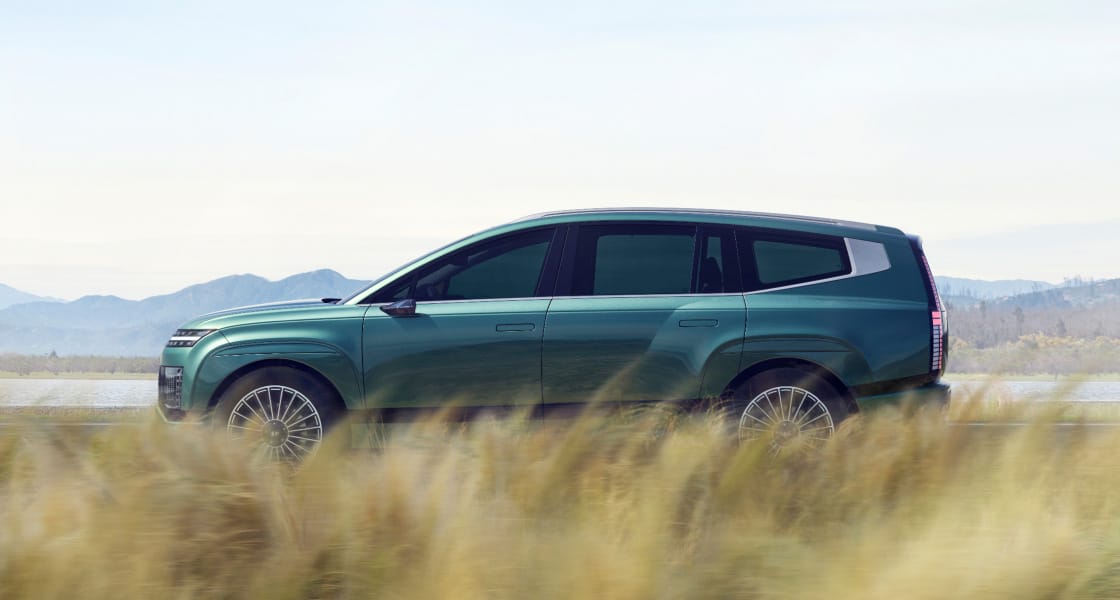 Hyundai ürün yelpazesindeki en uzun aks mesafesi, pürüzsüz tek kavisli tavan hattıyla bir araya gelerek yeni bir aerodinamik mimari yaratıyor.
