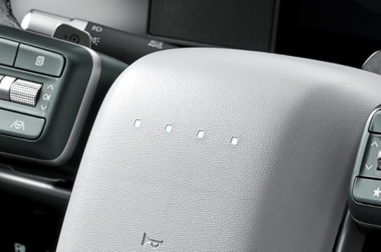 Rahat bir tutuş için deriyle kaplanmış olan çift renkli tasarım, sofistike bir görünüm kazandırıyor. Direksiyona entegre piksel ışıklar, daha güvenli ve rahat bir sürüş için önemli bilgileri kolayca erişilebilecek şekilde gösterir.
